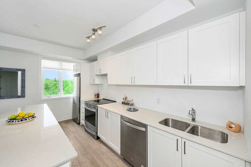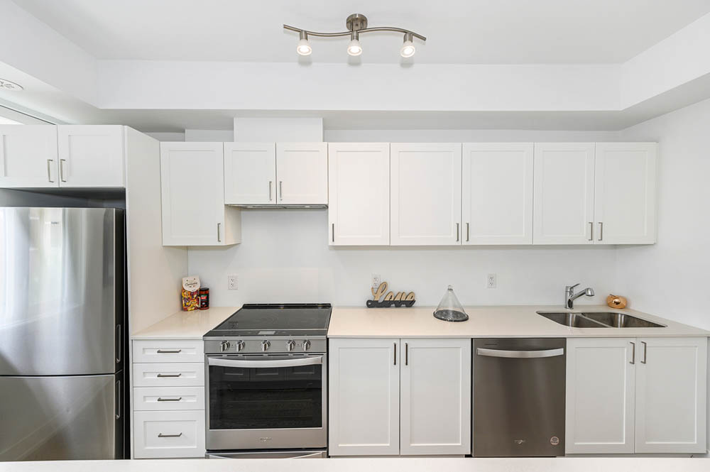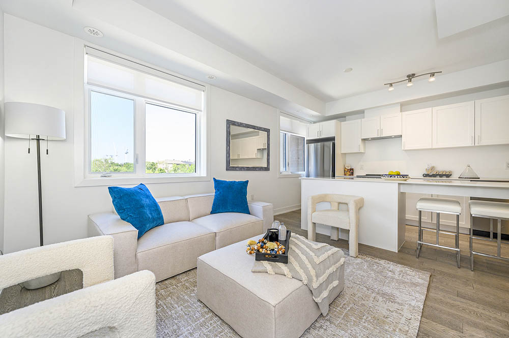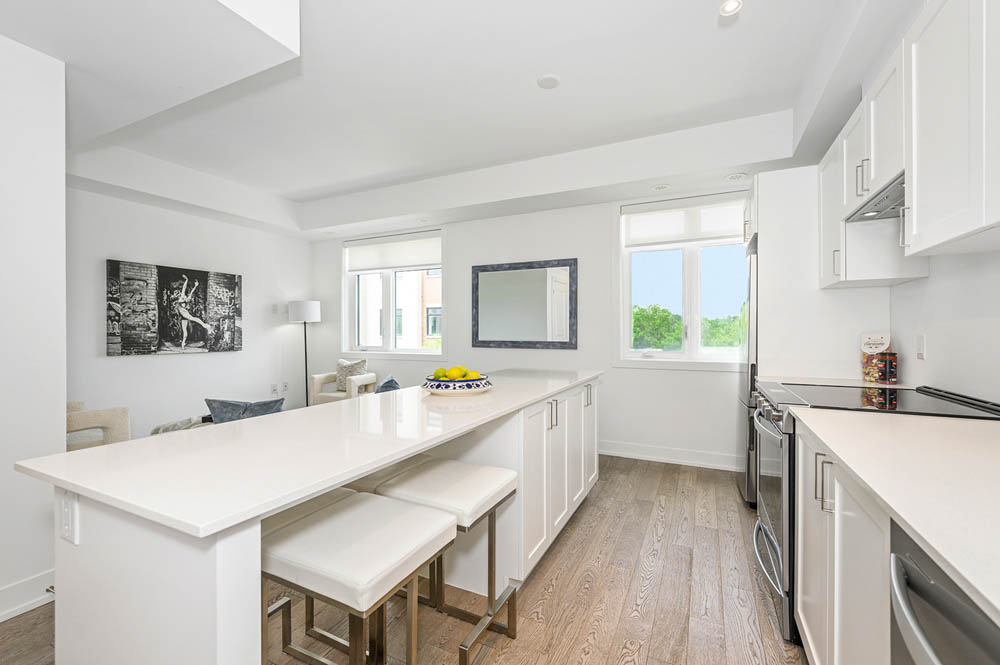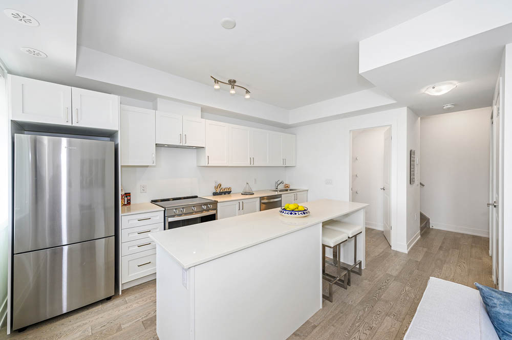 Newly Built Luxury Townhouse Condo in Lakeview Mississauga! Welcome to this beautifully maintained 2-bedroom, 2-bathroom stacked townhome located in a charming and vibrant community just steps from the lake! Offering 981 SF of thoughtfully designed interior space plus a massive 237 SF private rooftop terrace with unobstructed northeast views perfect for relaxing or entertaining under the stars. Bright and spacious, this home features modern finishes throughout, including sleek laminate flooring, oversized windows, and a gourmet kitchen with stainless steel appliances, a large pantry, and an island with a built-in dining table. Two generous bedrooms and two full 4-piece bathrooms provide both comfort and functionality. Enjoy the convenience of ensuite laundry and two underground parking spots included. Located in the heart of Lakeview, you’re within walking distance to Port Credit Village, the lakefront, parks, marinas, and scenic waterfront trails. Commuters will love the easy access to the QEW, GO Station, and public transit. The upcoming Lakeview Village redevelopment will bring even more amenities, green space, and community charm to the area. Neighborhood highlights:- Steps to the new Walmart, Metro, LCBO, Starbucks, Dairy Cream, Farm Boy- Minutes to popular restaurants, bakeries, cafes, and local shops- Top-rated schools nearby, including Cawthra Park Secondary School (Arts Program) and St. Paul SS- Close to Lakeview Golf Course, Marie Curtis Park, and the Waterfront Trail ideal for professionals, couples, and small families seeking a vibrant lakeside lifestyle with urban convenience. Don’t miss this opportunity to live in one of Mississauga’s most exciting and fast-growing communities!