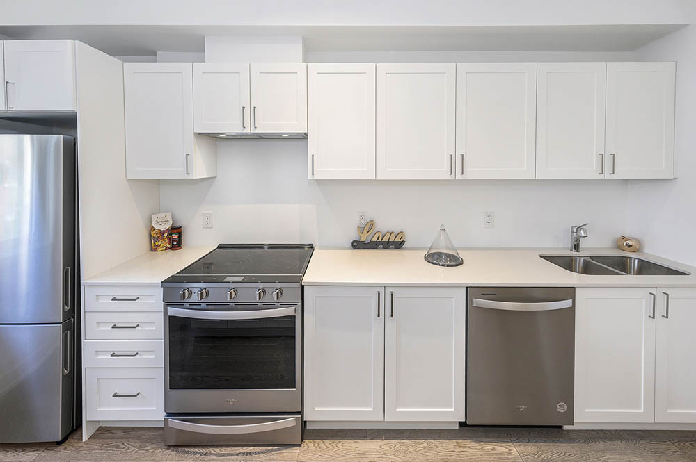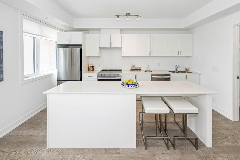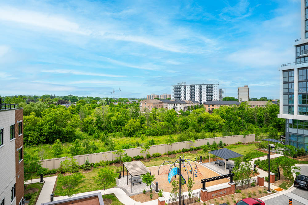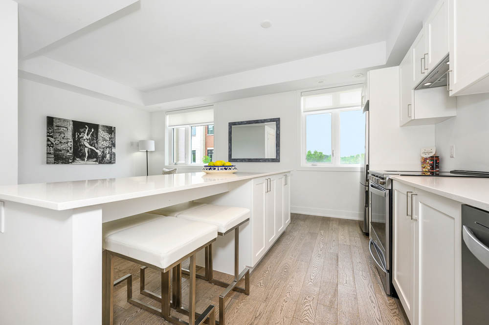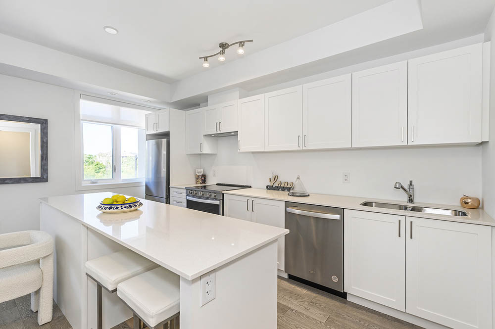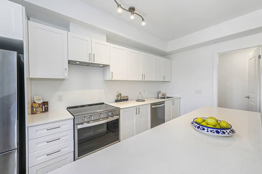 Newly Built Luxury Townhouse Condo in Lakeview Mississauga! Welcome to this beautifully maintained 2-bedroom, 2-bathroom stacked townhome located in a charming and vibrant community just steps from the lake! Offering 981 SF of thoughtfully designed interior space plus a massive 237 SF private rooftop terrace with unobstructed northeast views perfect for relaxing or entertaining under the stars. Bright and spacious, this home features modern finishes throughout, including sleek laminate flooring, oversized windows, and a gourmet kitchen with stainless steel appliances, a large pantry, and an island with a built-in dining table. Two generous bedrooms and two full 4-piece bathrooms provide both comfort and functionality. Enjoy the convenience of ensuite laundry and two underground parking spots included. Located in the heart of Lakeview, you’re within walking distance to Port Credit Village, the lakefront, parks, marinas, and scenic waterfront trails. Commuters will love the easy access to the QEW, GO Station, and public transit. The upcoming Lakeview Village redevelopment will bring even more amenities, green space, and community charm to the area. Neighborhood highlights:- Steps to the new Walmart, Metro, LCBO, Starbucks, Dairy Cream, Farm Boy- Minutes to popular restaurants, bakeries, cafes, and local shops- Top-rated schools nearby, including Cawthra Park Secondary School (Arts Program) and St. Paul SS- Close to Lakeview Golf Course, Marie Curtis Park, and the Waterfront Trail ideal for professionals, couples, and small families seeking a vibrant lakeside lifestyle with urban convenience. Don’t miss this opportunity to live in one of Mississauga’s most exciting and fast-growing communities!